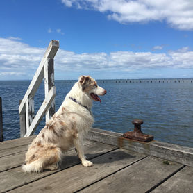 Phoenix came to us in 2015 from our good friend Martina Gandert at Hotoz Aussies. She is a Great Granddaughter of our original Aussies Dakota and Montana. Phoenix is an excellent family dog, accompanying us on camping trips and beach outings. She is an easy dog to live with, can be aloof with strangers but never shy or aggressive, she takes her job of guarding the house seriously until we open the door then she turns back into Miss Cool, Calm & Collected.